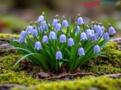 Fioletowe, Dzwonki, Kwiaty, Mech, Listki