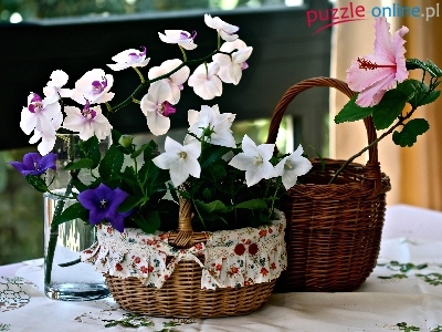 Dzwonki, Kosze, Orchidea, Kompozycja, Kwiaty, Hibiskus