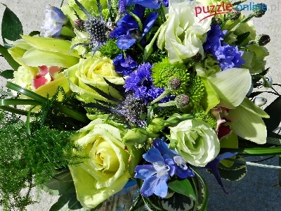 Puzzle Eustoma, Kwiaty, Bukiet, Róże