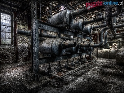 Fabryka, HDR, Zaniedbane, Wnętrze, Rury