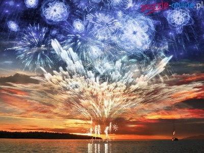 Puzzle Sylwester, Fajerwerki, Niebo