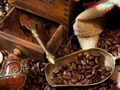 Ziarna, Fajka, Łopatka, Zegarek, Kawa, Młynek, Worek