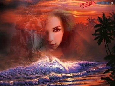 Puzzle Fale, Kobieta, Koń, Palmy