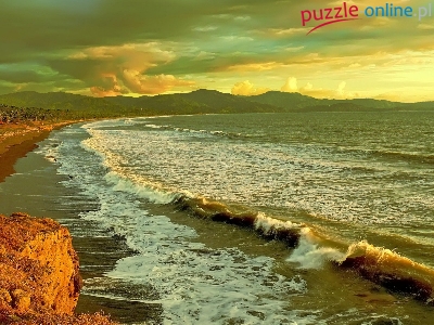 Puzzle Fale, Wybrzeże, Plaża, Góry