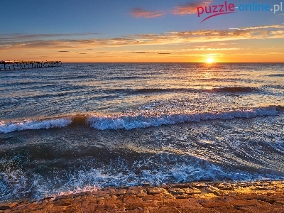 Puzzle Fale, Morze, Molo, Wschód słońca