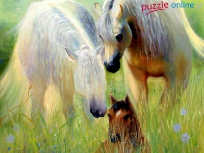 Puzzle Koni, Familia, Trawa