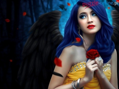 Puzzle Fantazja, Kobieta, Anioł, Róża
