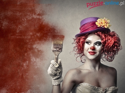 Pędzel, Kobieta, Kapelusz, Farba, Klaun, Makijaż, Pył