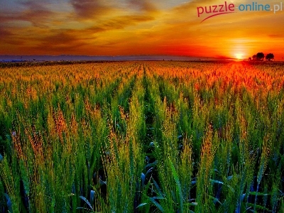 Farma, Zbóż, Zachód, Słońca, Kłosy