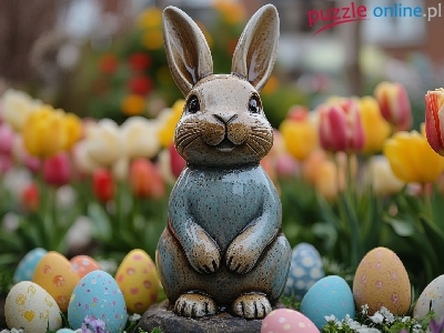 Wielkanoc, Figurka, ZajÄ…c, Tulipany, Pisanki