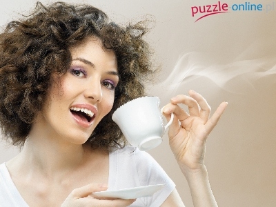Puzzle Filiżanka, Piękna, Brunetka, Kawy