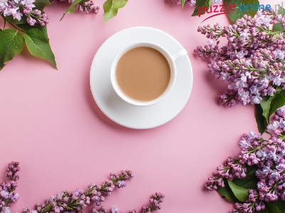 Różowe, Bez, Kwiaty, Filizanka, Tło, Kawa