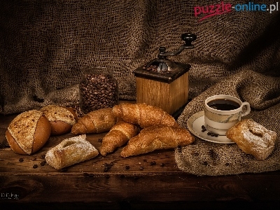 Filiżanka, Bułki, Młynek, Kawa, Pieczywo