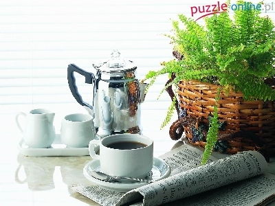 Puzzle Filiżanki, Paprotka, Dzbanek, Kawa