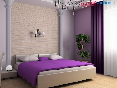 Puzzle Fioletowa, Sypialnia, Łóżko, Narzuta