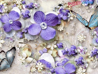 Puzzle Fioletowe, Kwiaty, Biało, Motyle