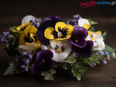 Kwiaty, Fioletowe, Bratki, Białe, Żółte