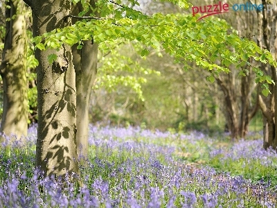 Puzzle Fioletowe, Las, Drzewa, Kwiaty