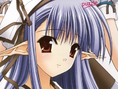 Puzzle fioletowe włosy, Shuffle, duże oczy