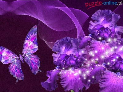 Fioletowe, Motyl, Grafika, Komputerowa, Kwiaty