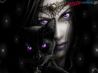 Puzzle Fioletowe, Kobieta, Kot, Oczy