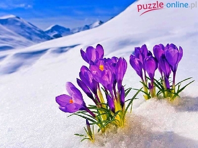 Puzzle Krokusy, Fioletowe, Åšnieg