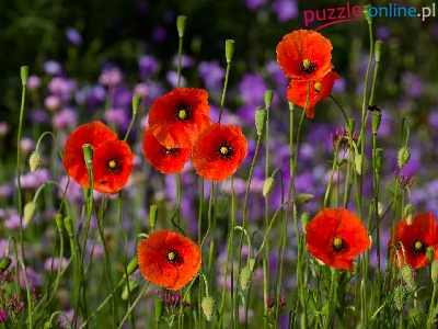 Puzzle Kwiaty, Fioletowe, Maki