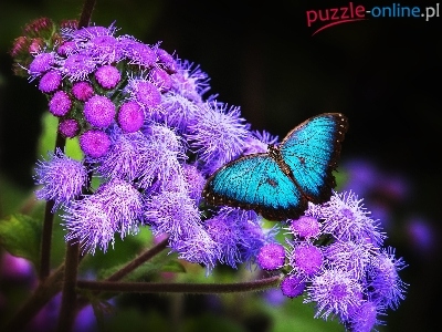Puzzle Fioletowe, Piękny, Motyl, Kwiaty