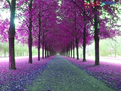 Fioletowe, Alejka, Park, Liście
