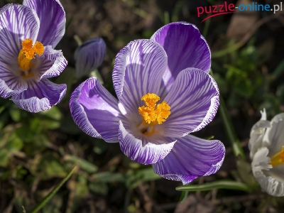 Puzzle Płatki, Krokusy, Kwiat, Fioletowe