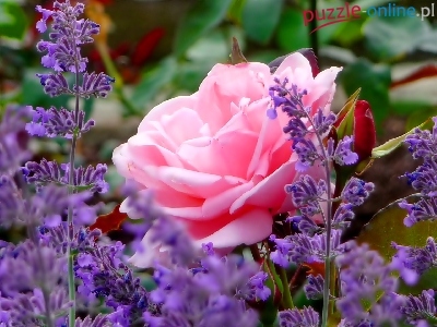 Puzzle Fioletowe, Różowa, Róża, Kwiaty