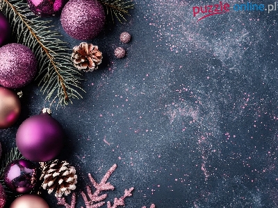 Boże Narodzenie, Bombki, Fioletowe, Gałązki, Szyszki