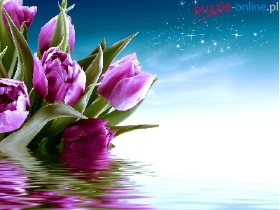 Puzzle Tulipany, Fioletowe, Liście