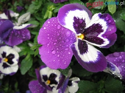 Puzzle Białe, Fioletowo, Bratki