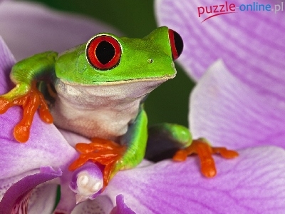 Puzzle Fioletowy, Zielona, Żabka, Kwiat