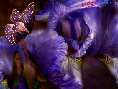 Puzzle Motyl, Fioletowy, Irysy