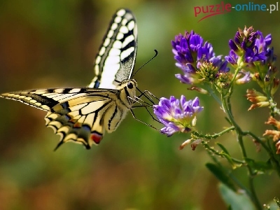Puzzle Fioletowy, Żółty, Motyl, Kwiat