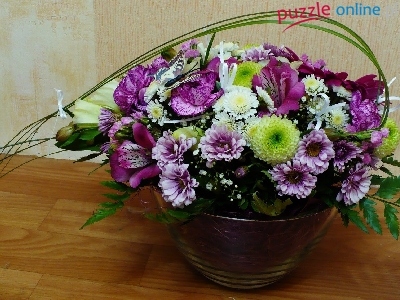 Puzzle Fioletowych, Kosz, Bukiet, Kwiatów
