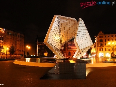 Noc, Polska, Fontanna, Wolności, Poznań