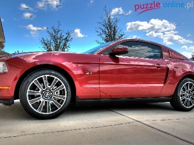 Plac, Ford, Chmury, Czerwony, Mustang GT, Niebo