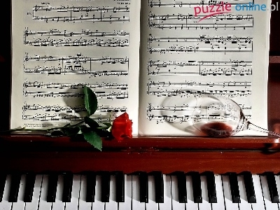 Puzzle Pianino, Róża, Nuty, Kieliszek