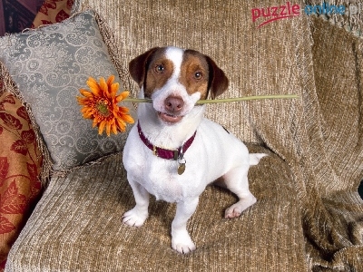 Puzzle Fotel, Piesek, Kwiatek, Poduszka