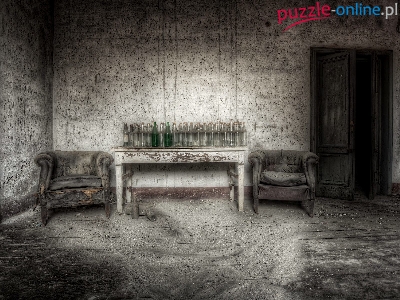 Fotele, Pomieszczenie, Butelki, Zaniedbane, Stare, Stół