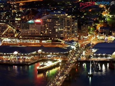 Sydney, Port, Miasta, Chmur, Nocą, Most, Harbour, Drapacze, Statek, Fragment
