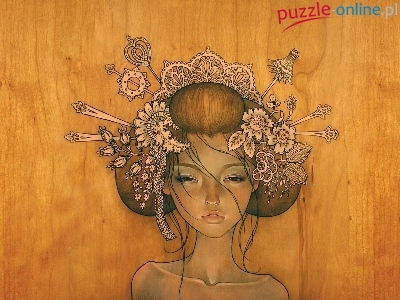 Puzzle Fryzura, Kobieta, Kwiaty, Deski