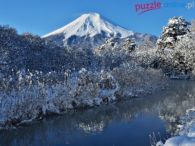 Fuji, Japonia, Zima, Góra, Rzeka