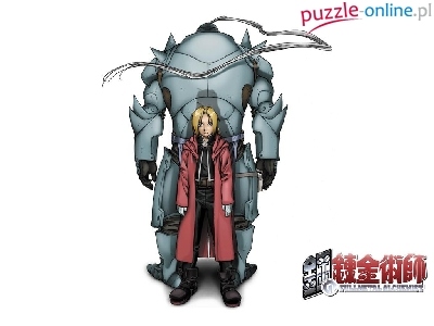Puzzle Full Metal Alchemist, robot, człowiek, napis