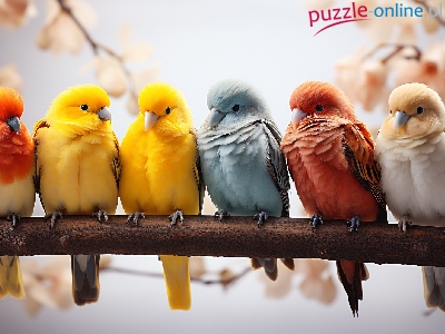 Puzzle Papugi, Ptaki, Kolorowe, Gałąź