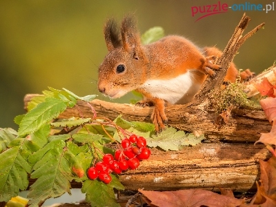 Gałąź, Jarzebina, Jesień, Wiewiórka, Liście