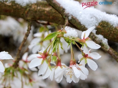Gałąź, Wiosna, Kwiaty, Wiśni, Śnieg